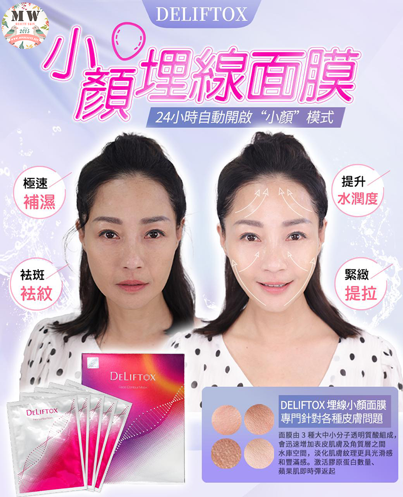 Deliftox 埋線小顏面膜專為亞洲肌膚硏發,長達2年科研時間, 邀請亞洲不同肌膚狀況女性100位做肌膚測試使用後滿意程度達94.6%