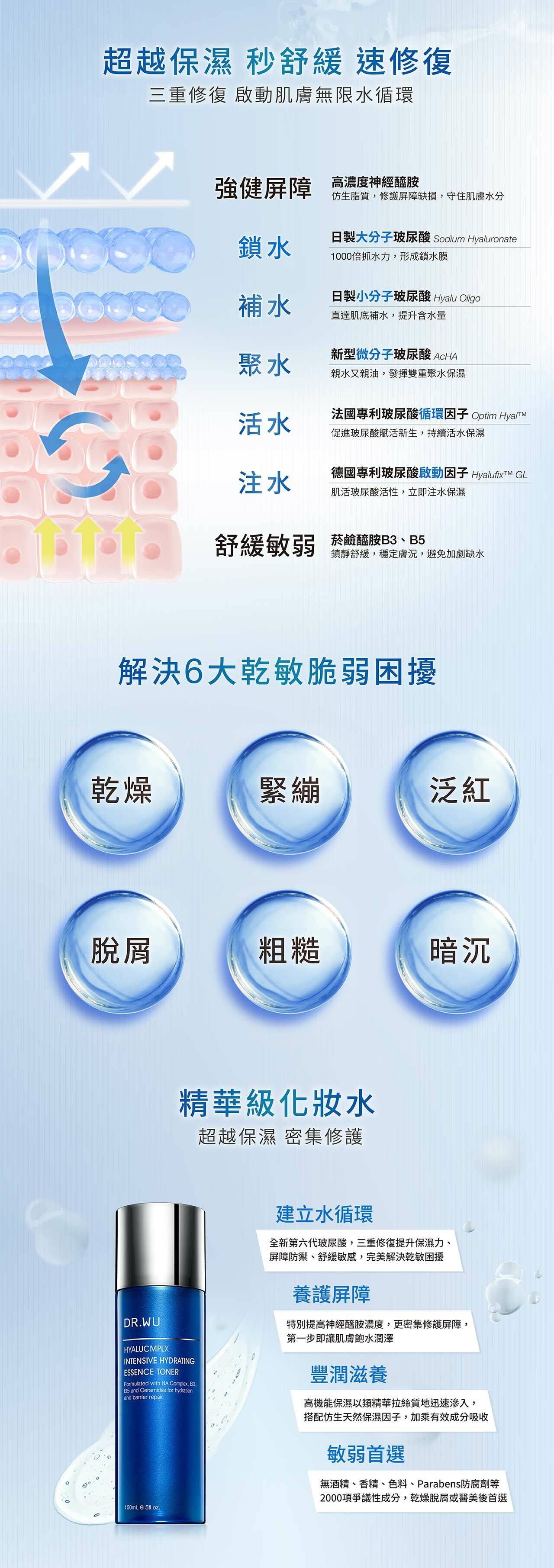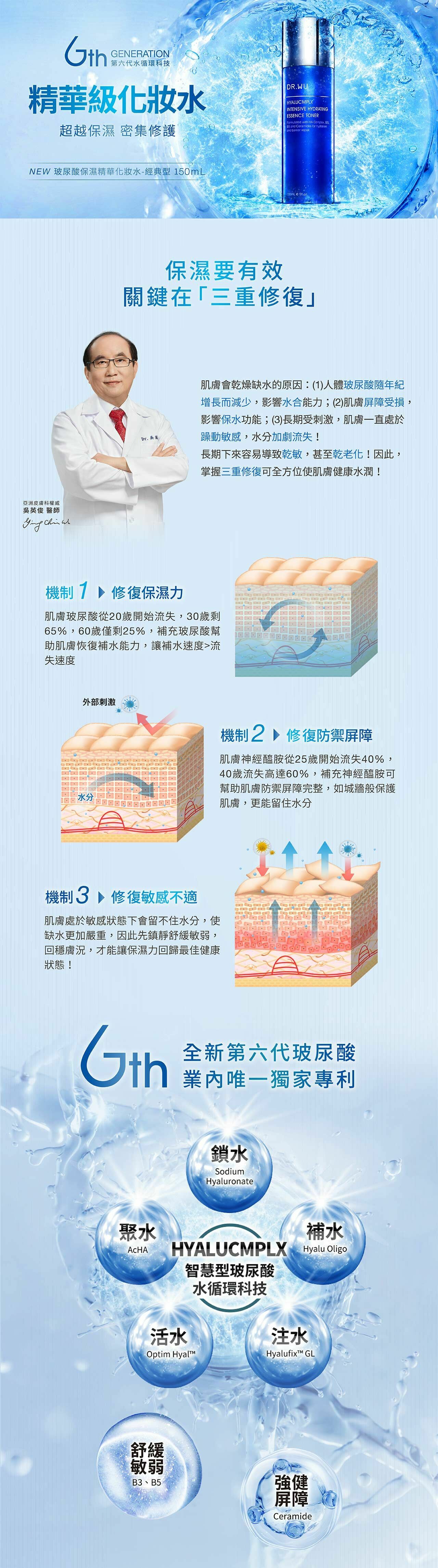 3. 全新第六代玻尿酸,提升保濕力、修復屏障,舒緩敏感不適,完美解決乾敏困擾。