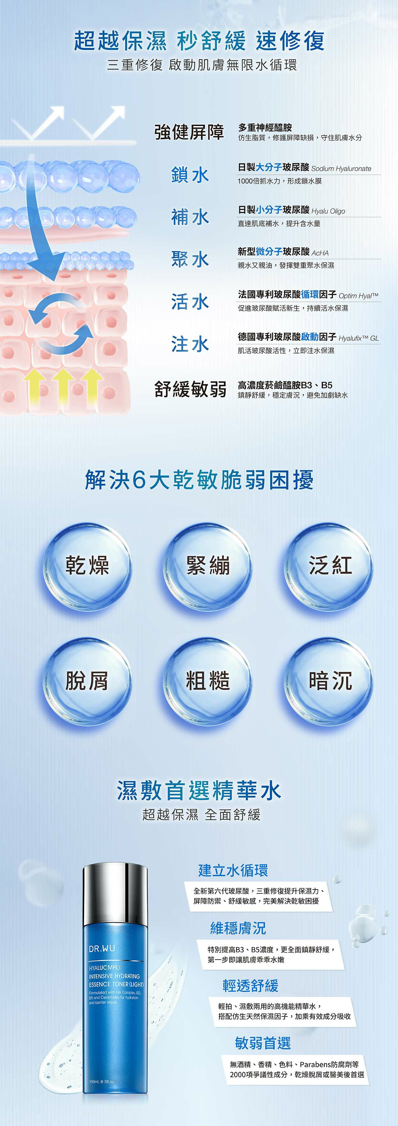 3. 全新第六代玻尿酸,提升保濕力、修復屏障,舒緩敏感不適,完美解決乾敏困擾。