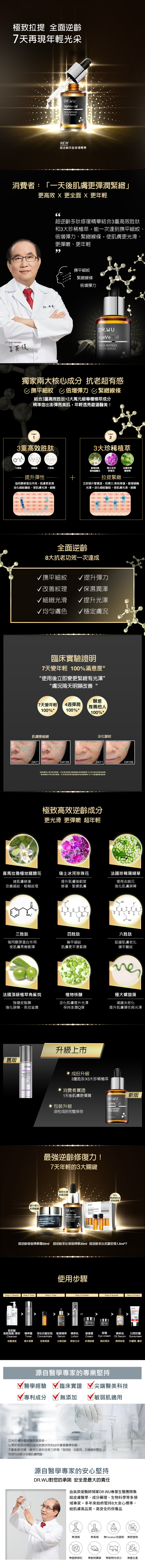 結合三、四、六高效胜肽和三大頂級珍稀植萃-瑞士冰河珍珠花、喜馬拉雅極地龍膽花、法國珍稀珊瑚草,一次達到撫平細紋→倍增彈力→緊緻線條,使肌膚瞬效更光滑、更年輕!三大頂級珍稀植萃皆萃取自極地環境,擁有強大修復力,能高效修復肌膚淺、中、深層喚醒原生膚質,將抗老做得更紮實有感。搭配極致高效逆齡成份,1滴達成全方位抗老功效:撫平細紋、提升彈力、改善紋理、保濕潤澤、細緻光滑、提升光澤、均勻膚色、穩定膚況,肌膚立即保濕水潤、提亮光澤、柔嫩年輕!