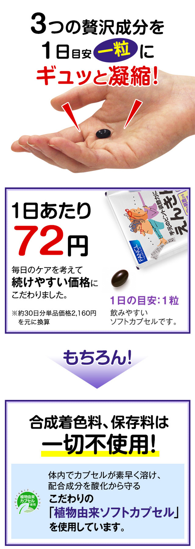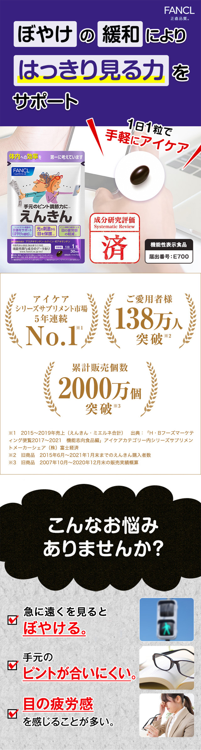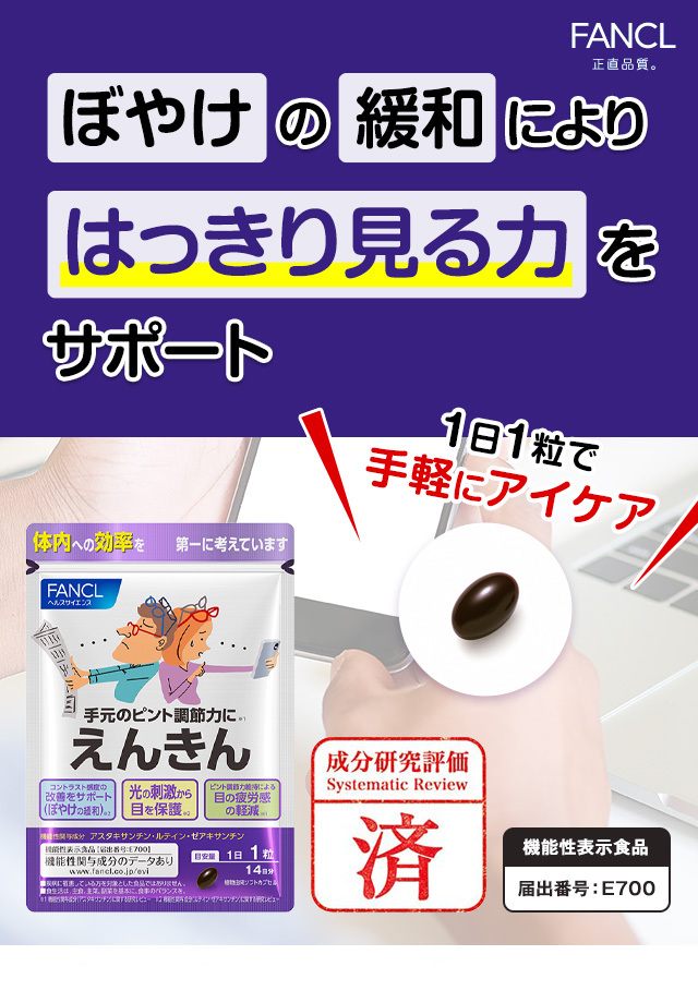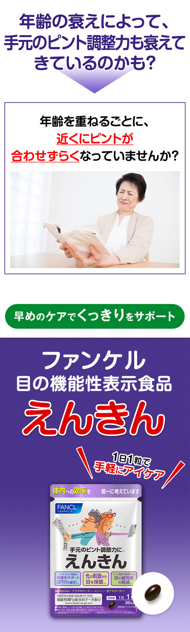 FANCL嚴選3種成分蝦青素、玉米黃素、葉黃素制成的功能性表示食品。