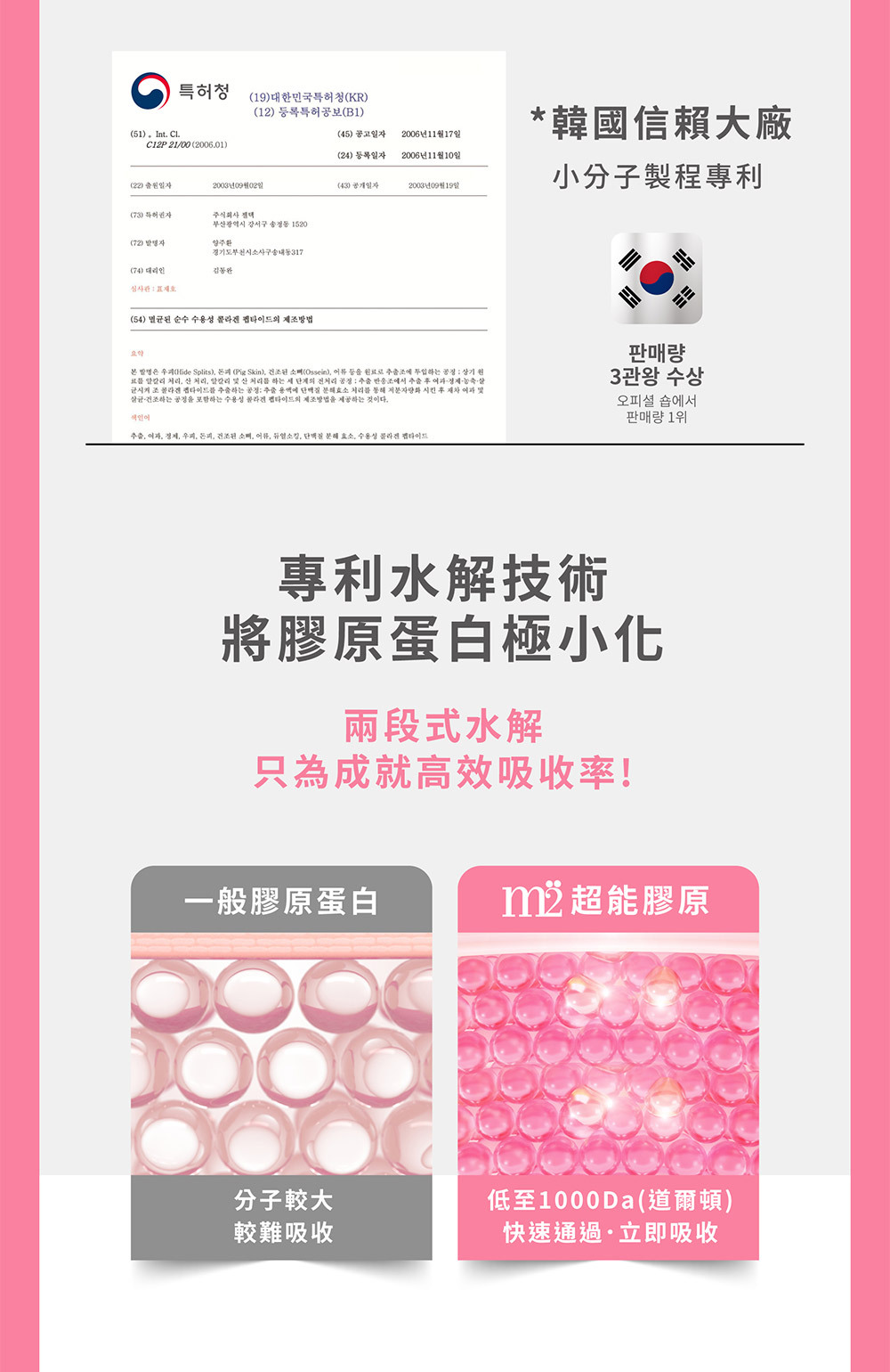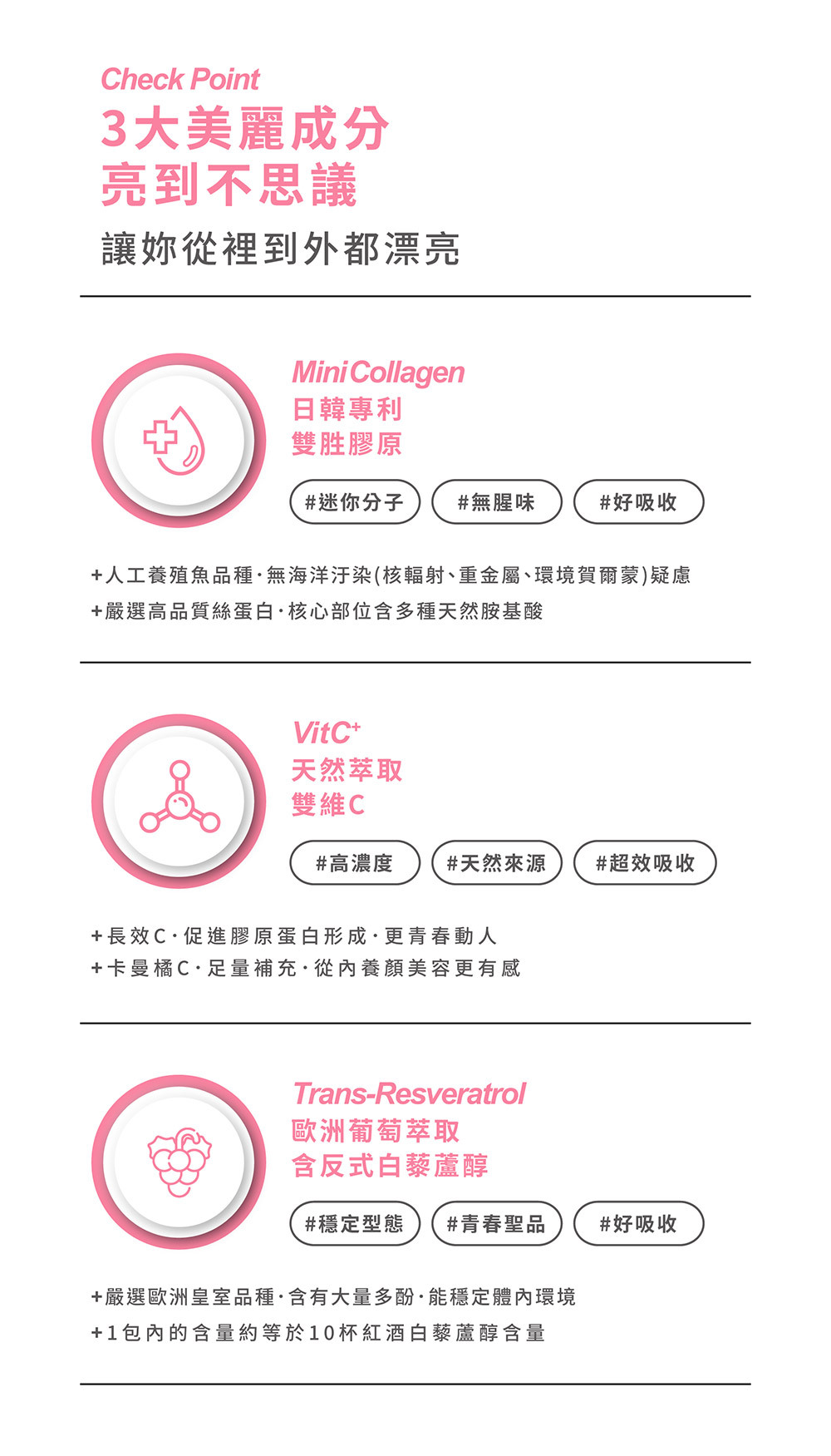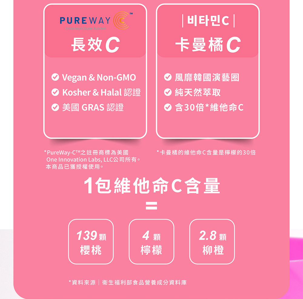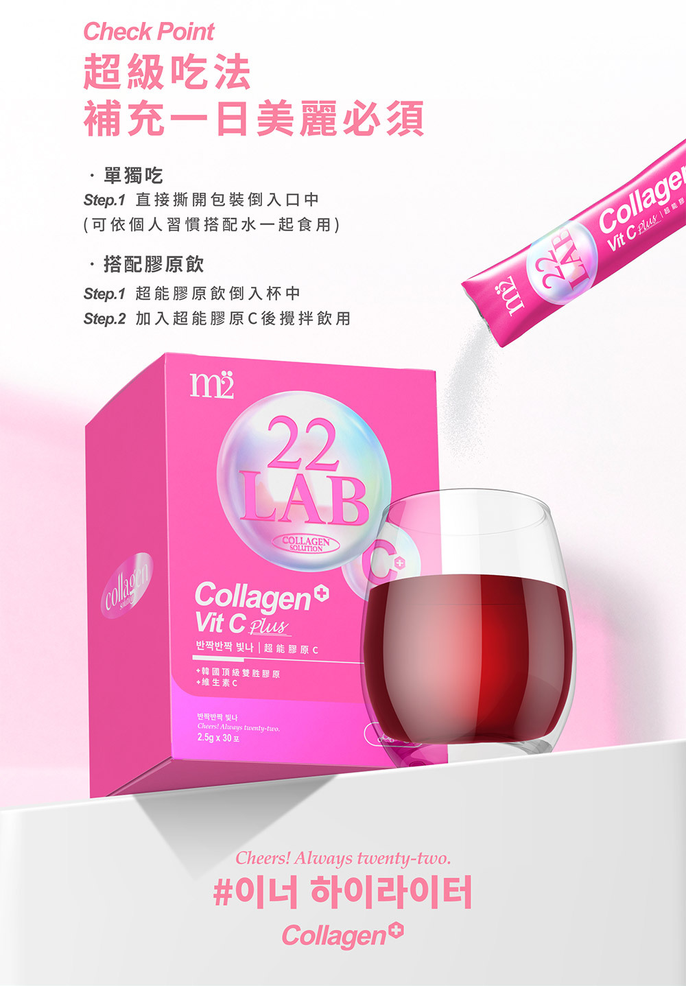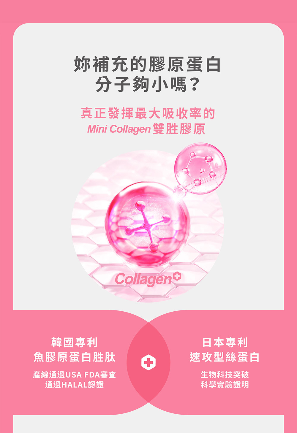 每包蘊含1000mg韓國專利雙胜膠原及高單位維他命C