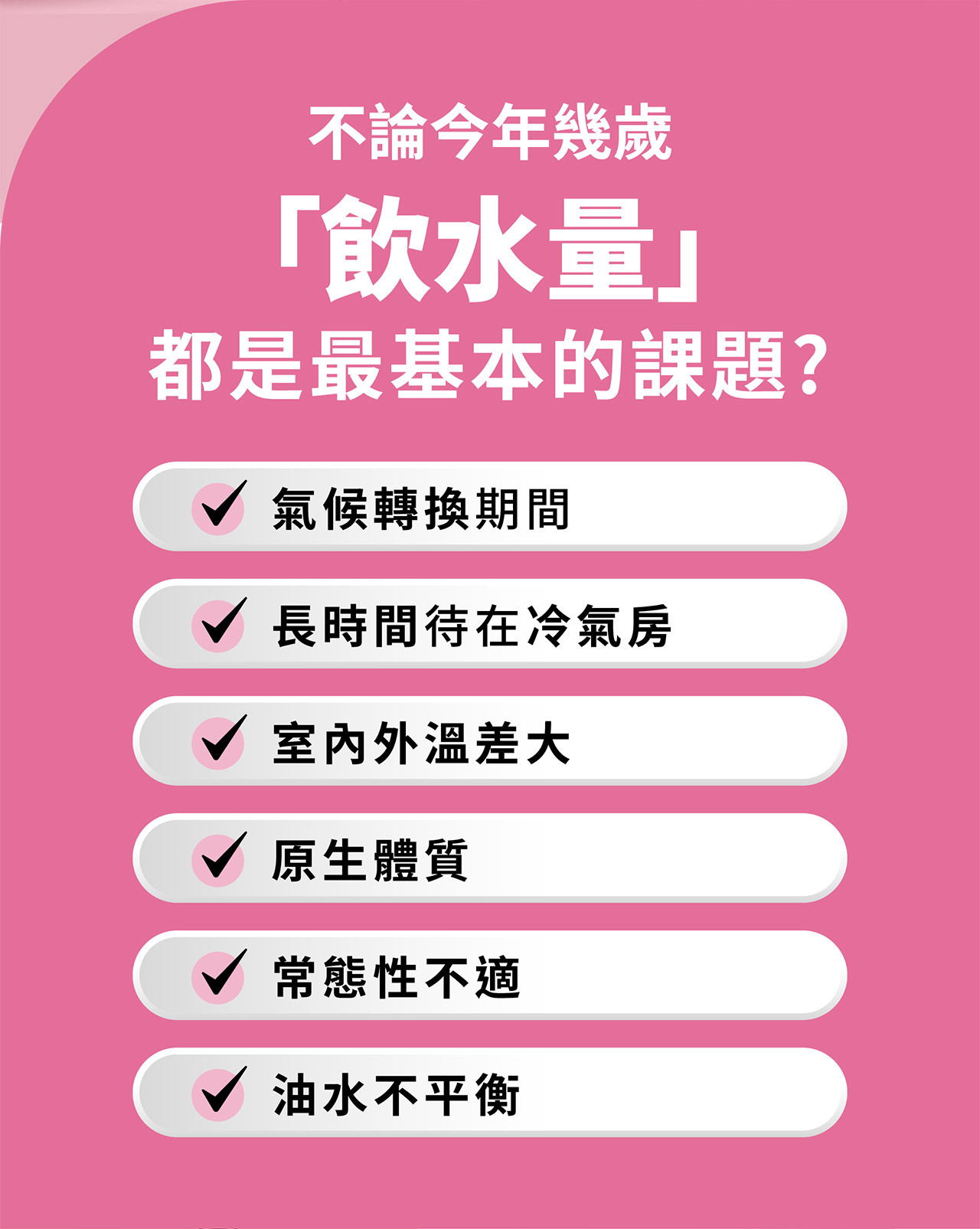 可以根據最近的自身狀態、氣候,調整每天的口服保養清單,水光飲、膠原飲、夜亮飲,