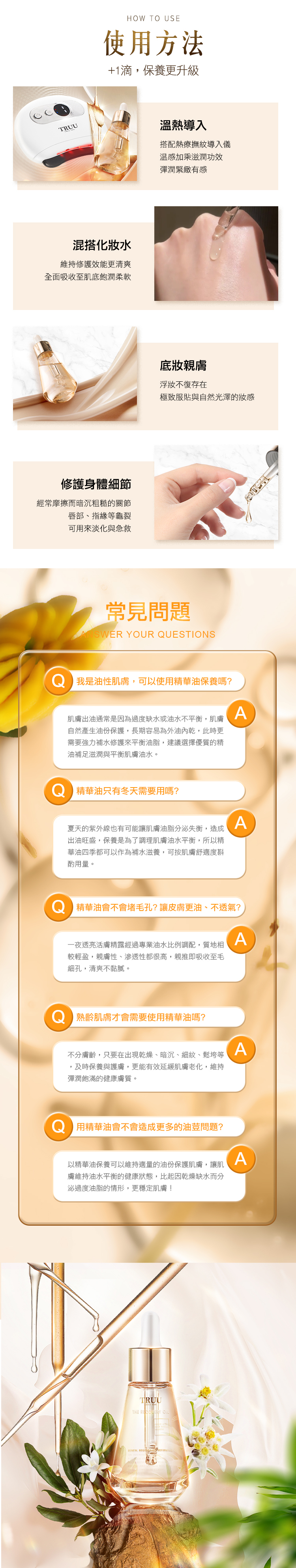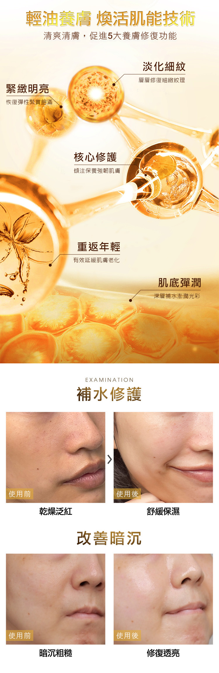 取適量塗抹於臉部與頸部,輕提按摩導入保濕緊實修護