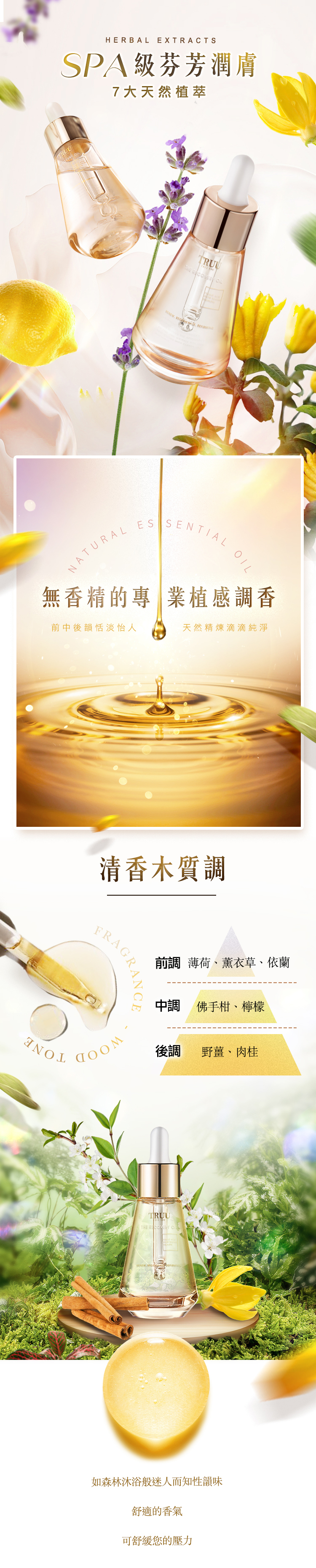 頂級植萃精油,親膚潤澤深入吸收、長效保濕舒緩