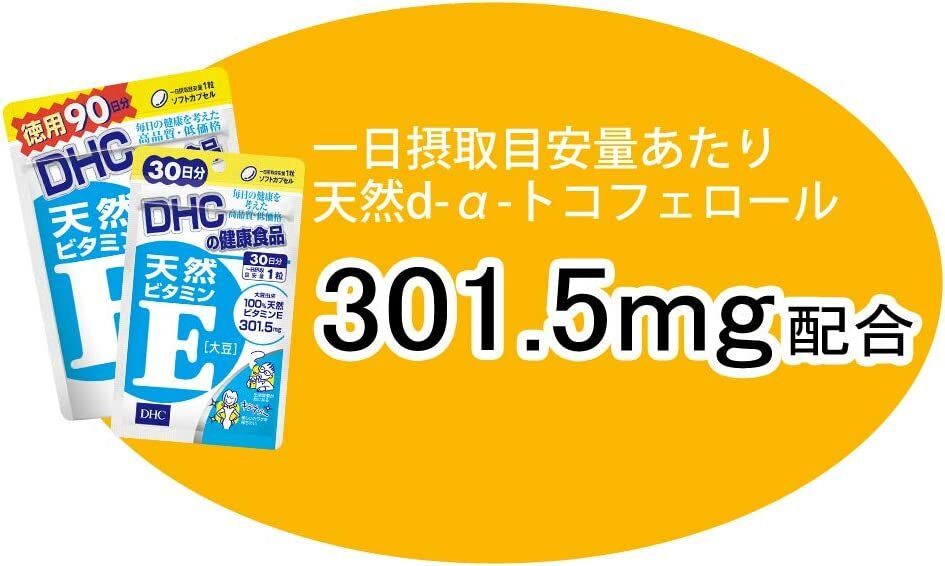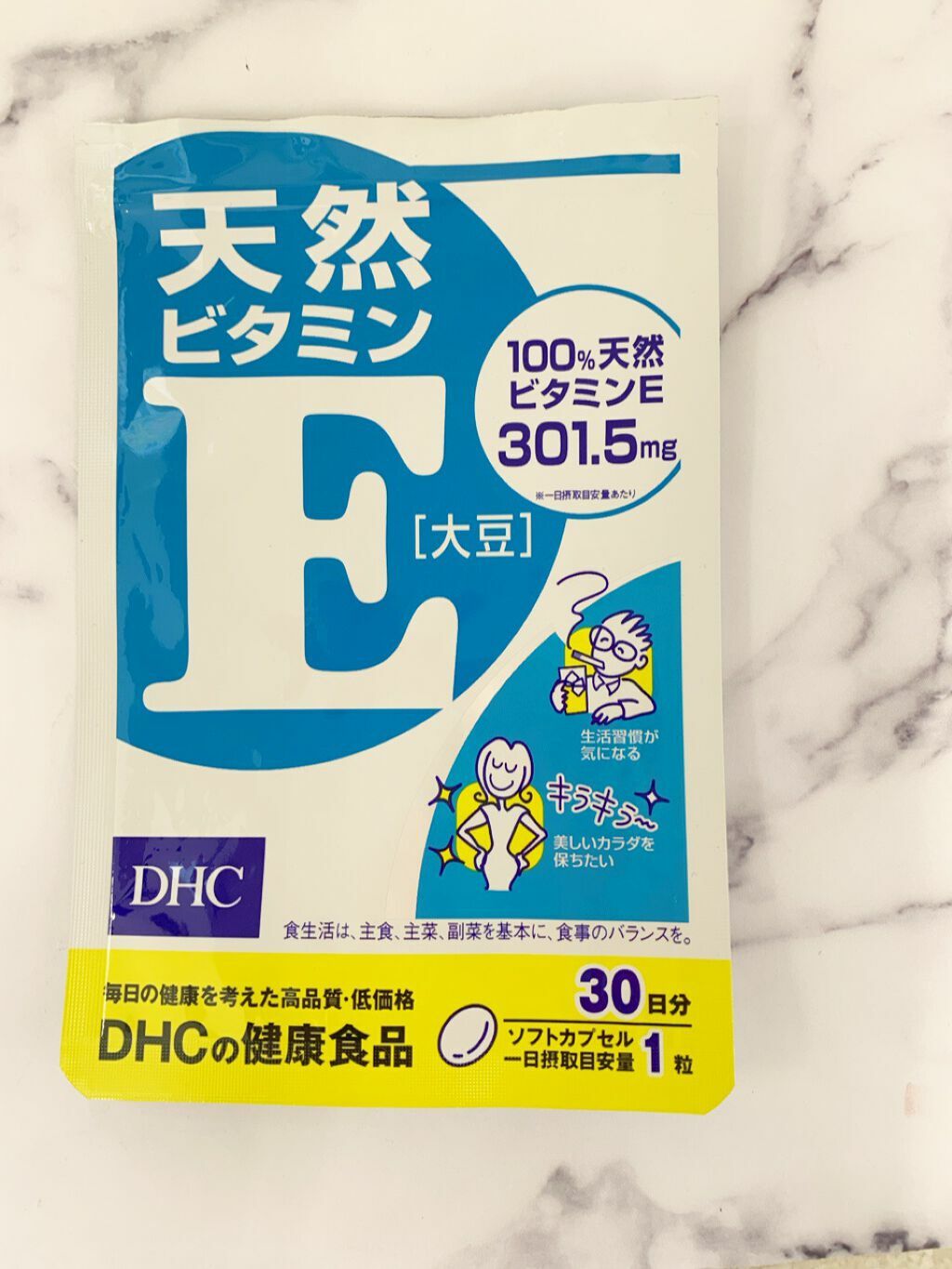 DHC維他命E通過植物材料提煉,採用大豆的D-A-生育酚,是具有高度活性的維他命E。