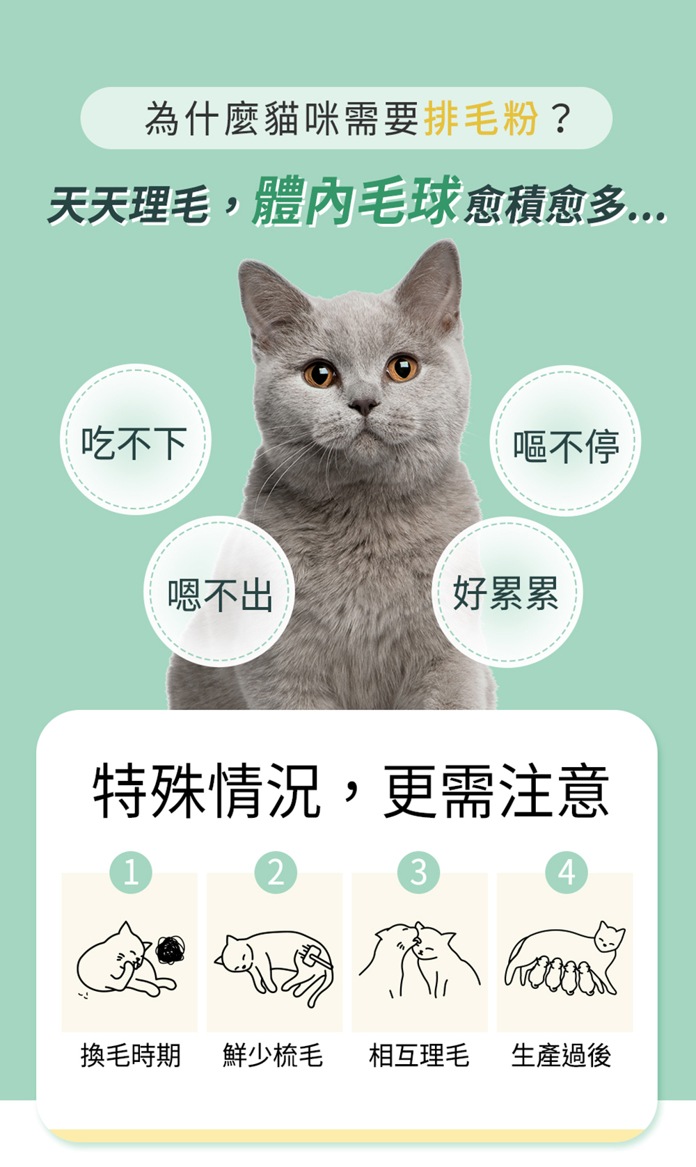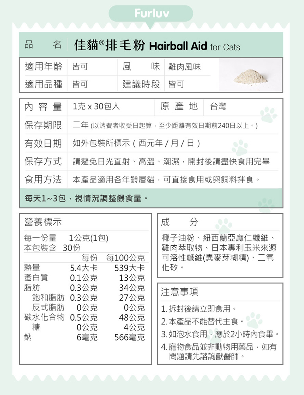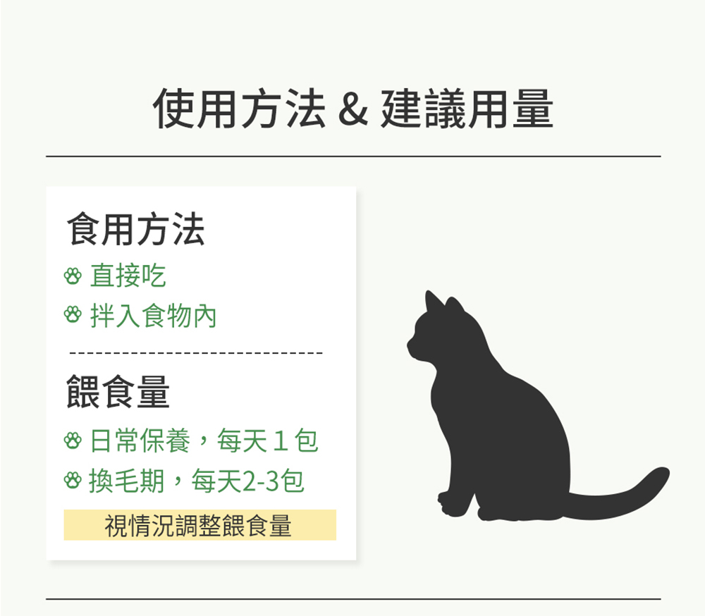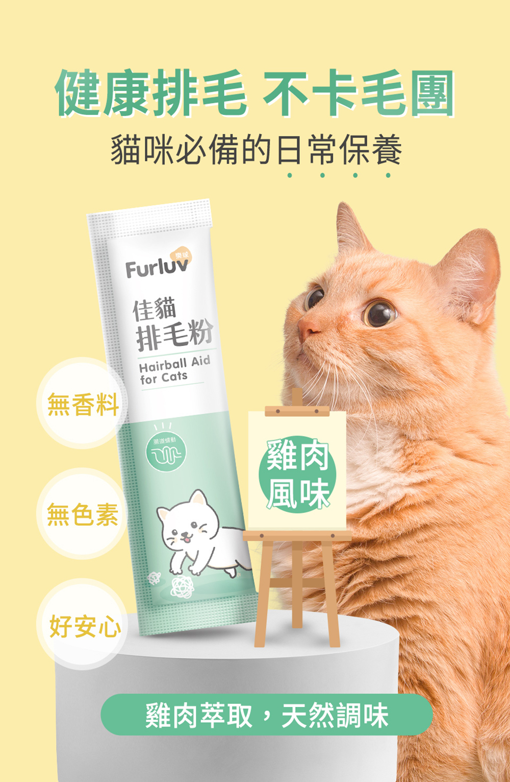 讓貓咪補充營養健康、溫和單純的排毛粉。
