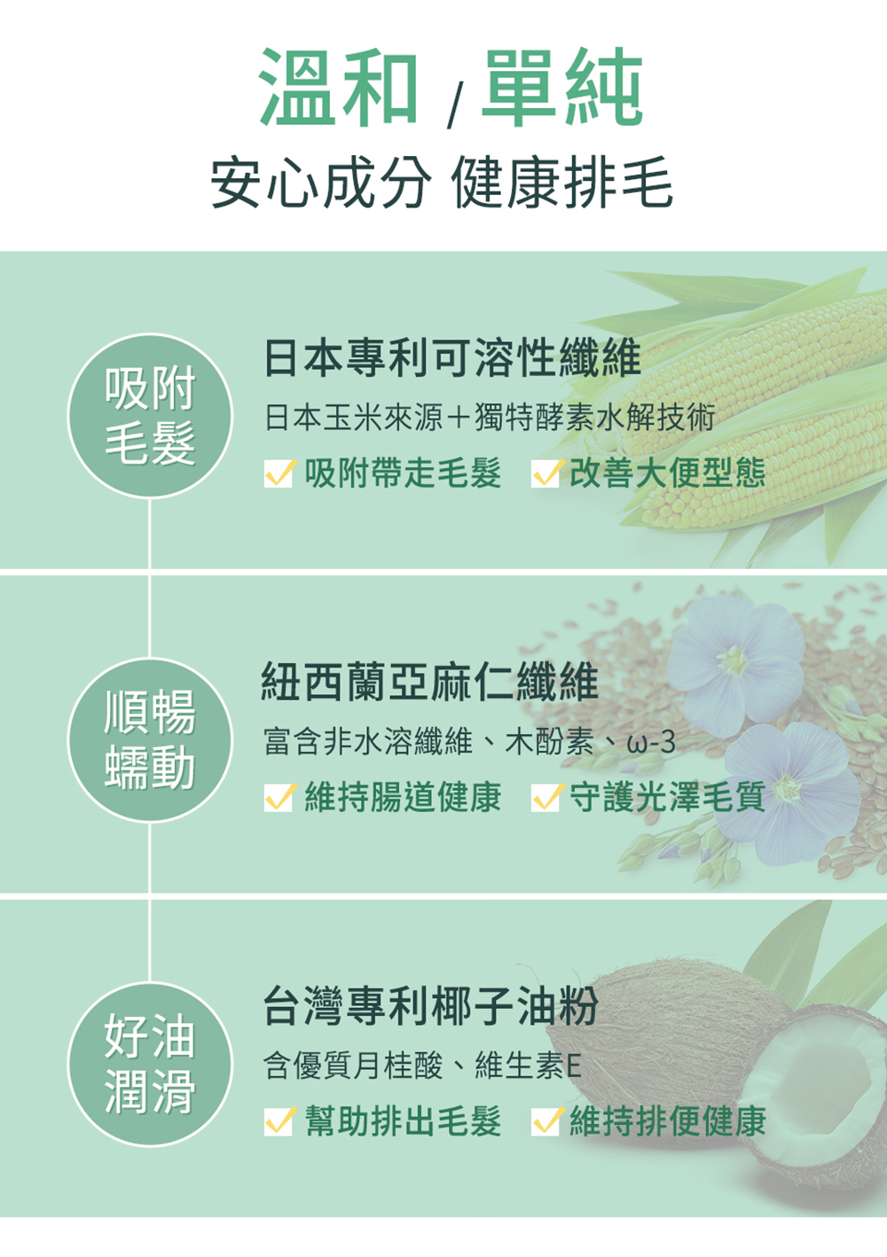 幫助蠕動與順利排除,維持健康排毛的日常保養。